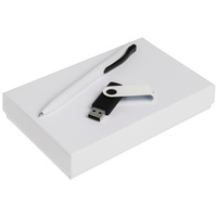 - флешка - пластик, покрытие софт-тач; ручка - металл, покрытие софт-тач; переплетный картон