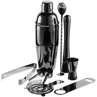 Набор для приготовления коктейлей Splash Maker, черныйнержавеющая стальшейкер: диаметр 8,1 см, высота 24 см; джиггер 3,8х3,8х6,8 см; барная ложка 25,5 см; гейзер 10,8х2,9х2,9 см; мадлер 20,5х3,4х3,4 см; щипцы 16х1,8 см; открывашка 18х4 см; упаковка 28х11х11 смарт. 15599.30