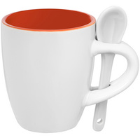 Кофейная кружка Pairy с ложкой, оранжевая с белойкаменная керамикакружка: диаметр 5,8 см, высота 6,9 см; ложка: 8,5x2 смарт. 13138.26