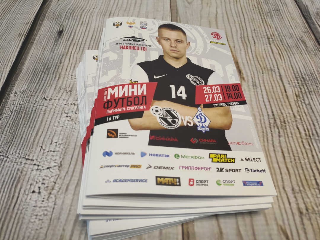- Спортивные мероприятия: программы матчей, турниров, расписания, афиши. Пример — программа по матчам мини-футбола в ДИВСе Екатеринбург.