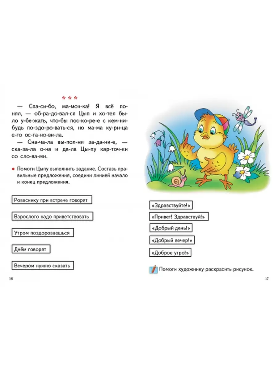 Чтобы обучение не казалось скучным и утомительным, мы предлагаем ребенку после каждого занятия взять цветные карандаши и раскрасить рисунки в книге. Задание называется "Помоги художнику".