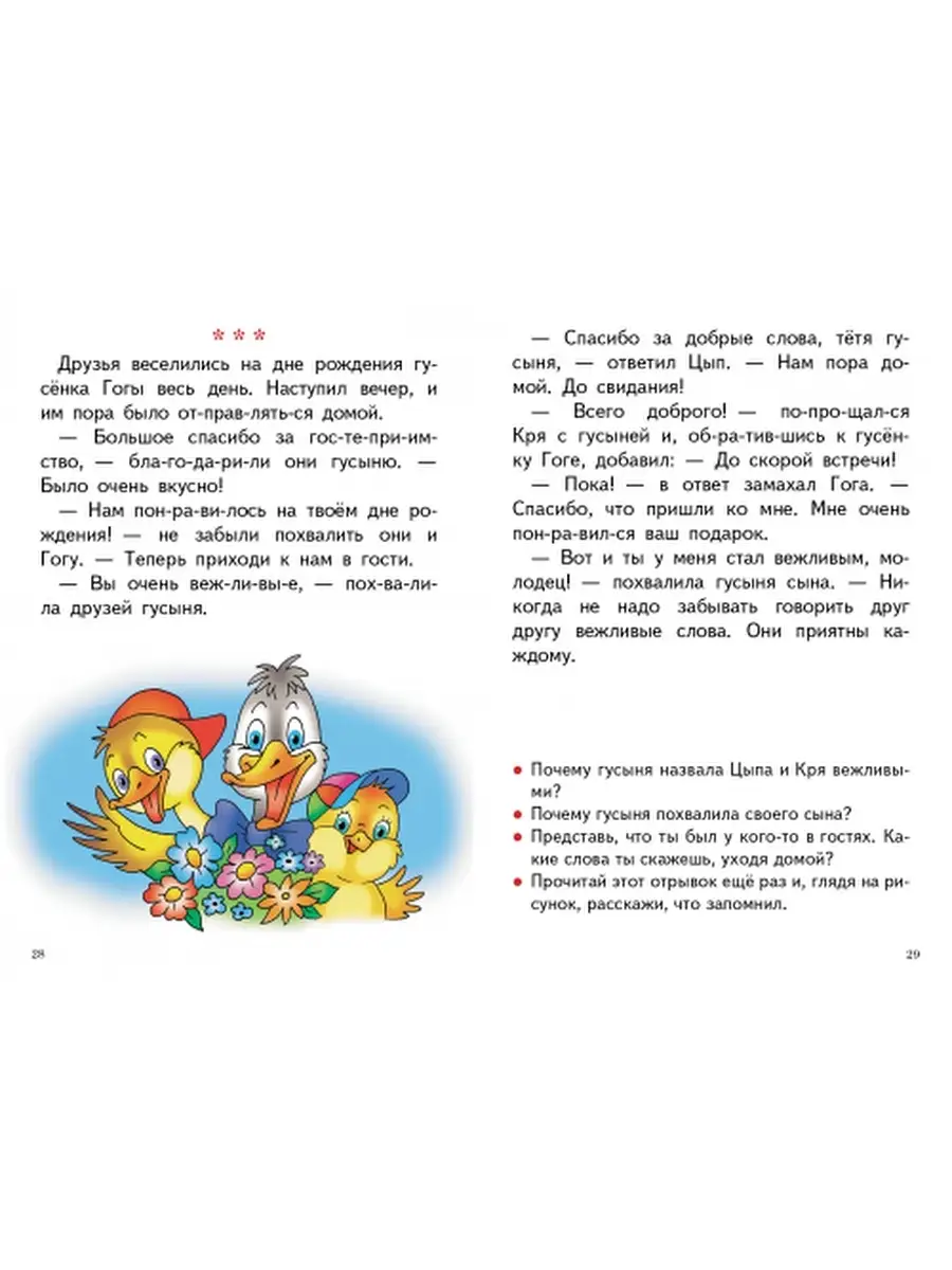 Книга способствует развитию и такого навыка, как осознанное чтение. После каждого небольшого законченного по смыслу отрывка ребенку предлагаются вопросы на понимание прочитанного. Они направлены на развитие связной речи.