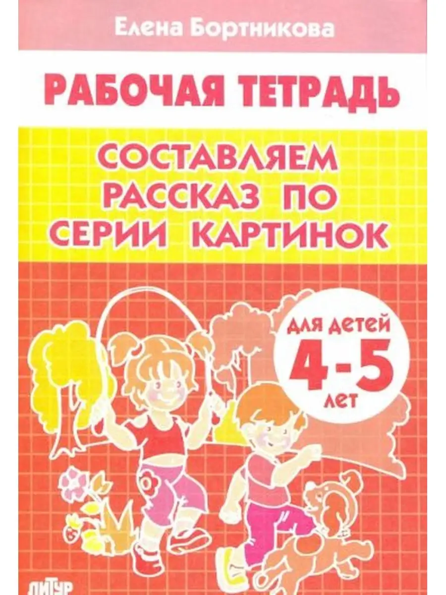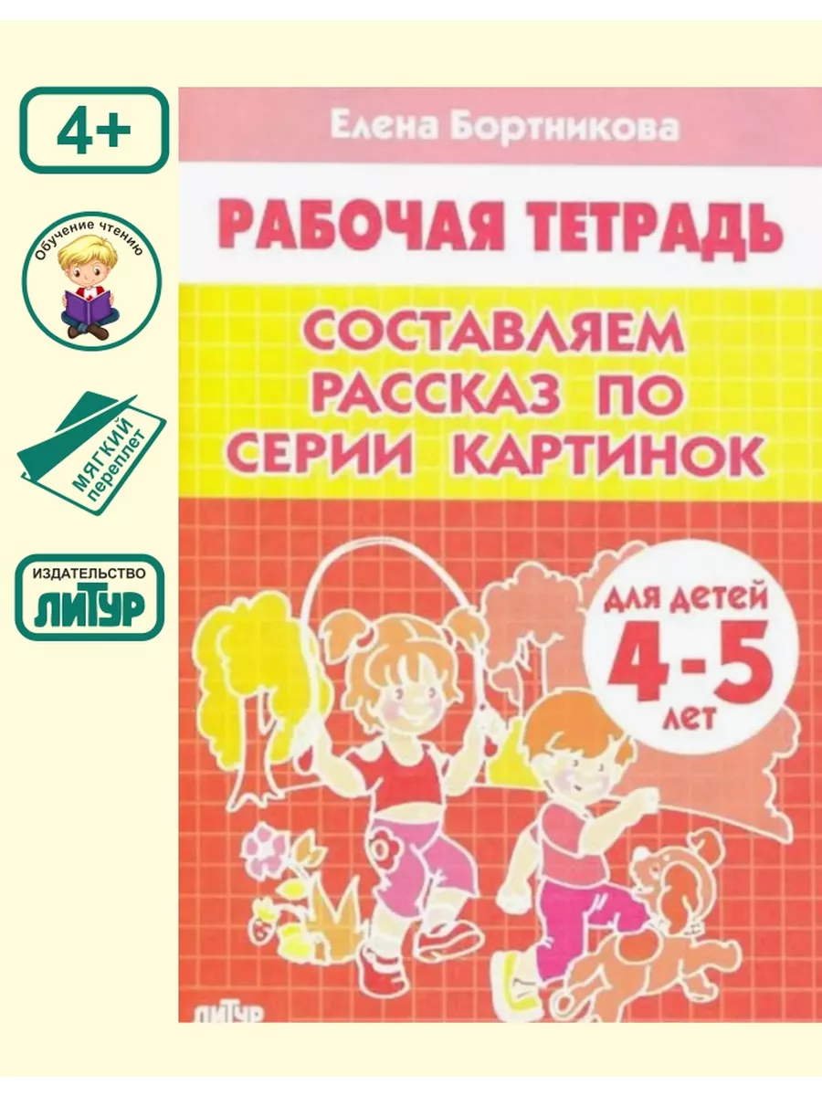 Вашему вниманию предлагаются задания на развитие связной речи и творческого воображения у детей 4-5 лет. Первоначальным этапом развития связной речи является составление одного предложения по картинке (см. тетрадь "Развиваем связную речь" для детей 3-4 лет). Когда ребенок уже научился составлять грамматически правильное сложное предложение по картинке, используя вопросы взрослого, ему предлагается новый этап работы - составление рассказа по серии картинок.При работе над таким видом задания придерживайтесь определенного алгоритма:- Рассмотрите с ребенком все рисунки.- Составьте по каждой картинке несколько предложений, используя наводящие вопросы.- Глядя на картинки, повторите с ребенком все предложения, составляя их в один рассказ.- Предложите ребенку еще раз повторить свой рассказ. Благодаря этой работе речь вашего ребенка станет красивой и связной, а словарный запас разнообразным.Тетрадь рассчитана на совместную работу взрослых и детей. Адресована родителям и педагогам для занятий с дошкольниками.