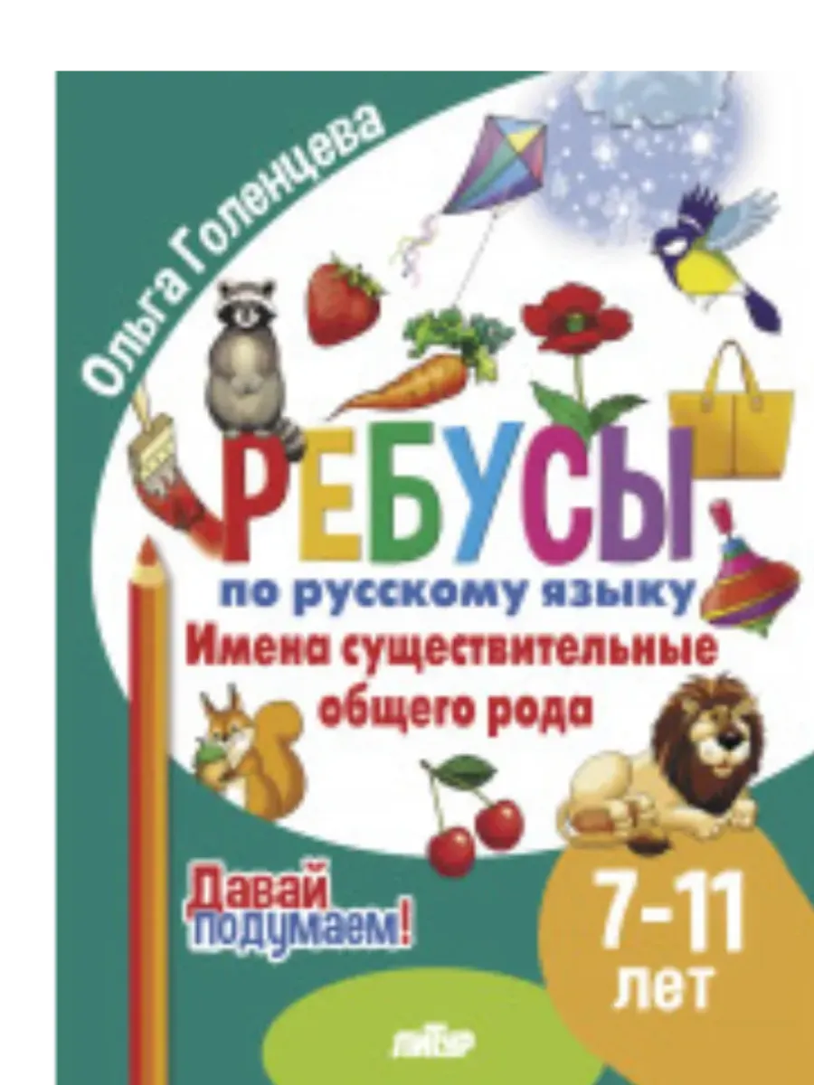 Ребусы по русскому языку. Серия Давай подумаем. Имена существительные общего рода — класс нарицательных одушевленных существительных, которые могут в зависимости от речевой ситуации выступать и как слова мужского, и как слова женского рода. Отгадывая ребусы, дети учатся подбирать синонимы слов, запоминают написание слов, одновременно получая навыки их употребления в устной и письменной речи. Тетрадь предназначена для самостоятельной или совместной со взрослыми работы детей младшего школьного возраста. Соответствует требованиям федерального государственного стандарта, может быть использована на уроках и во внеурочное время.